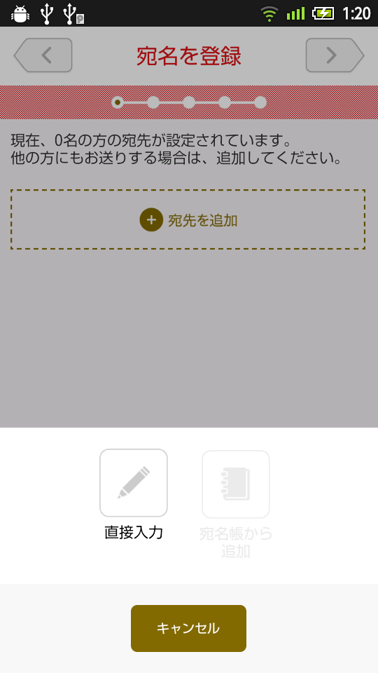 次に宛名を登録し、差出人の登録と進みます。