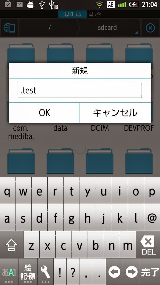 (ESファイルエクスプローラは隠しファイルの表示ができます。