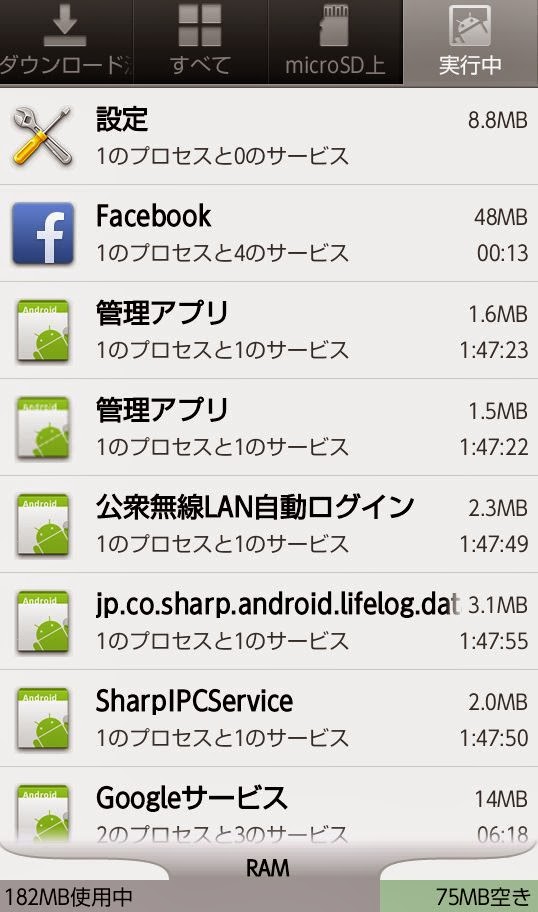 ちなみにこれがAndroidでのメモリの使用状況ですが
